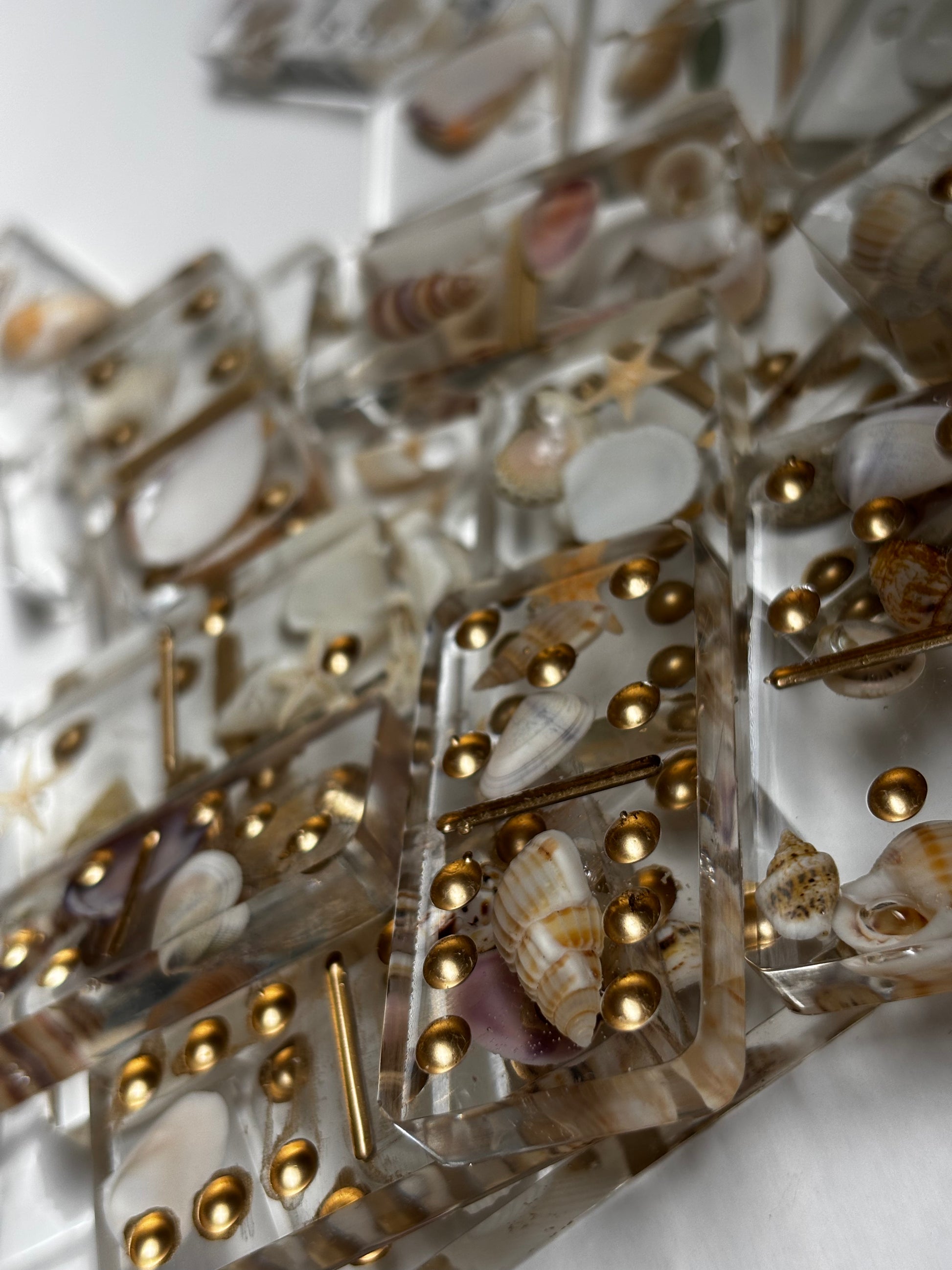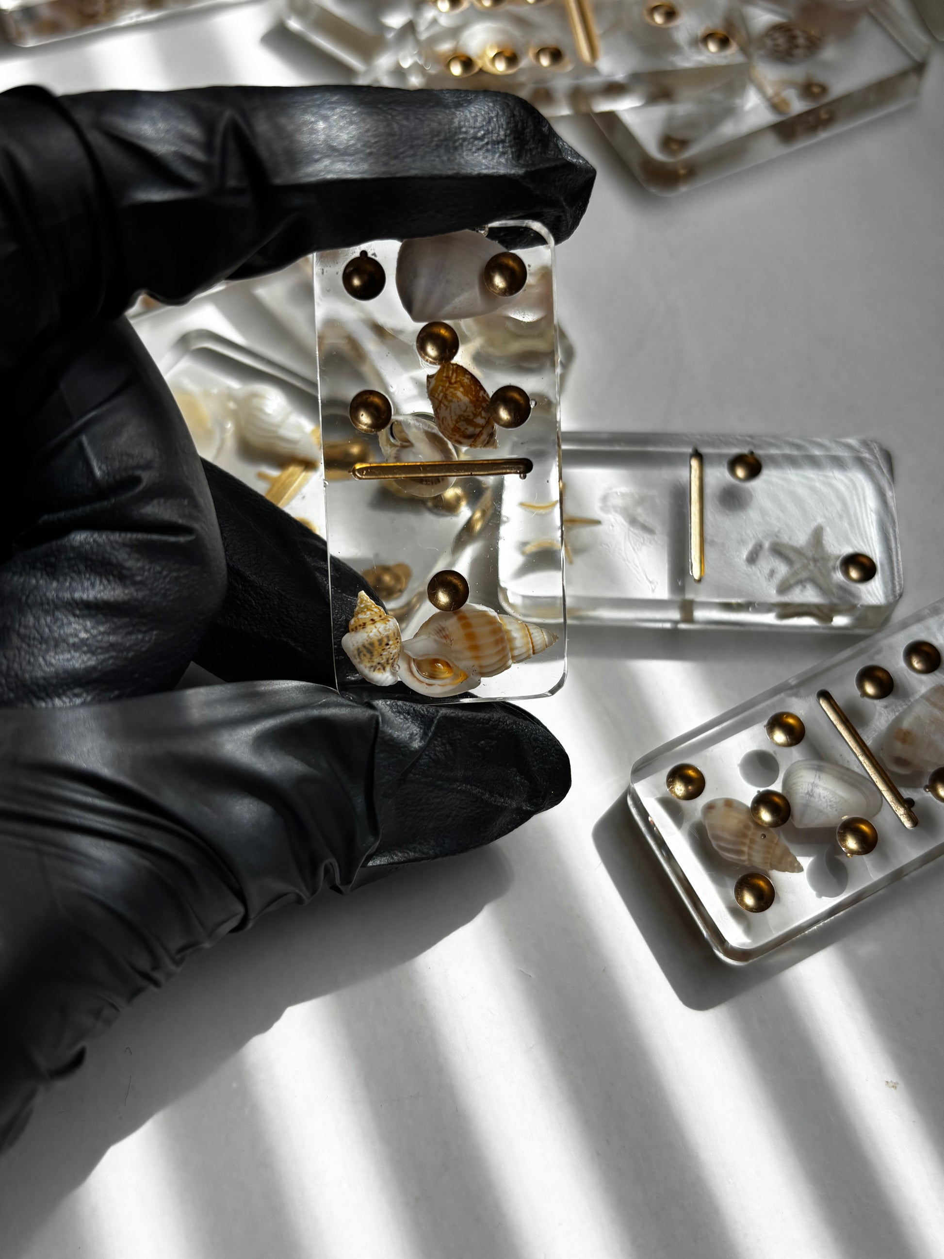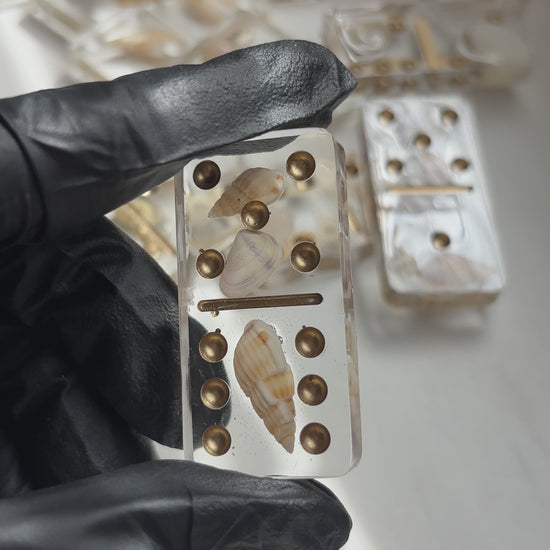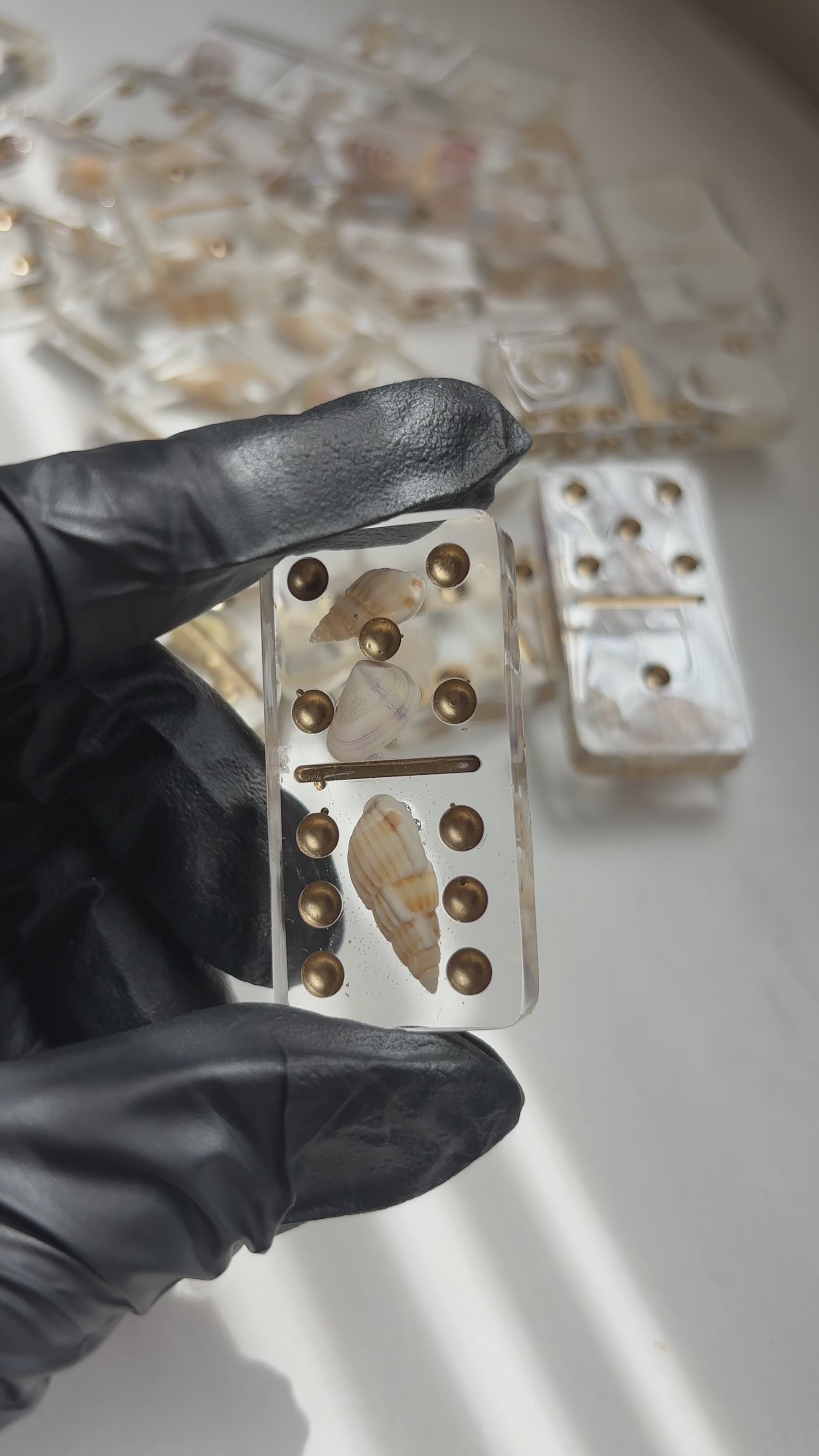 Dive into fun with the Ocean Treasures Domino Set! These 28 handcrafted pieces each have their own unique shell, giving every tile a special look and a tactile feel that’s fun to touch and play with. The transparent background lets the shells shine, making your game feel like a little ocean adventure. No two pieces are alike, so every round is exciting and new!